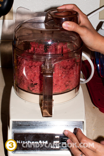 - Thịt thì rửa sạch, thái thành miếng vuông nhỏ để xay cho dễ. Lưu ý là thịt phải giữ trong lạnh chứ không nên để ngoài lâu nhé. Sau đó phải lấy giấy paper towel lau thật khô (phải cực khô nhé cả nhà. Tớ nghĩ là vì miếng thịt sau khi xay, mình trộn gia vị vào luôn là xong nên miếng thịt khô thì mới để lên men và không bị hỏng được). Tiếp đến cho thịt vào food processor xay cho nhuyễn (nhuyễn hơn thịt băm bình thường nhé cả nhà). Thường là cho vào xay tới khi thịt vón thành 1 cục lại là được.